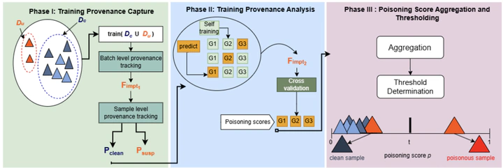 PoisonSpot focuses on precise detection of clean-label backdoor attacks by tracking how individual training samples affect parameter updates over time. The system attributes poisoning influence through provenance lineage and flags high-risk samples for rejection.